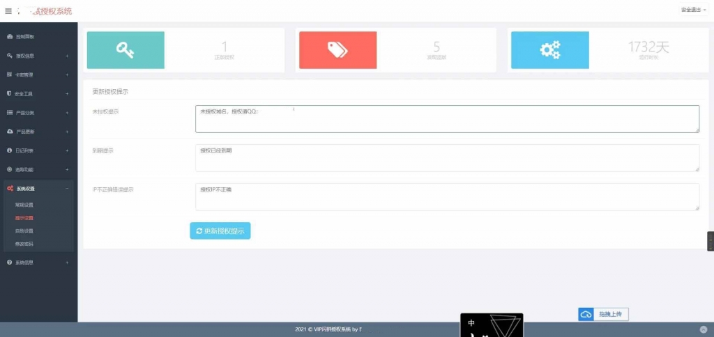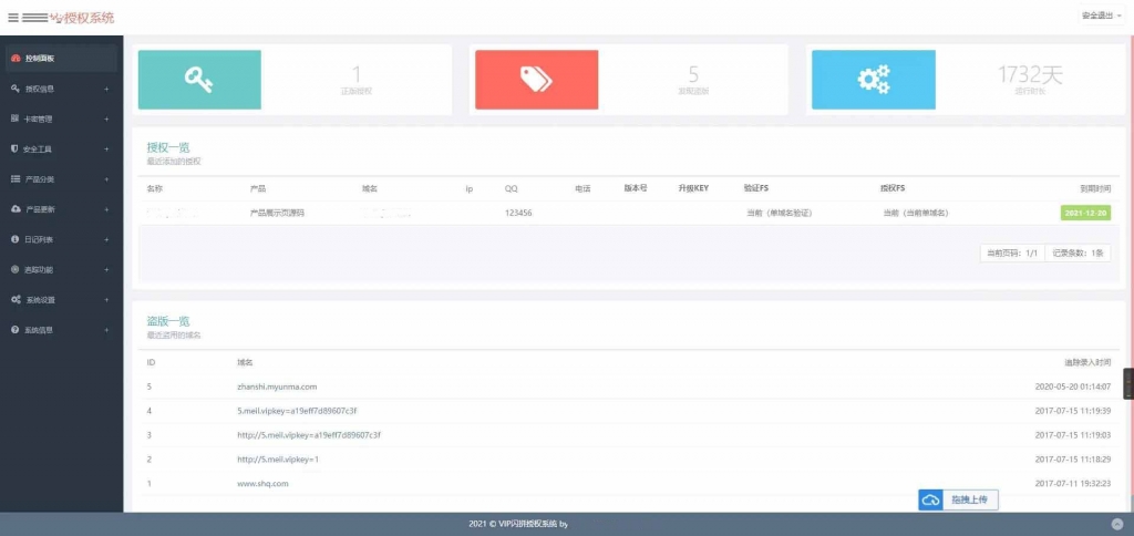 介绍: PHP授权验证更新系统完整版,一键更新系统,一键卡密生成自助授权功能; 域名ip双重验证功能等等 修复盗版检测,确保实时查看盗版 修复在线加密系统; 一键加密 此源码不需要授权,完全开源。 图片: 前端 后端 代码加密: 授权提示: 防盗追踪: 资源下载此资源下载价格为6.6U点点击检测网盘有效后购买,VIP免费立即升级客服QQ:305582964 联系邮箱:305582964@qq.com