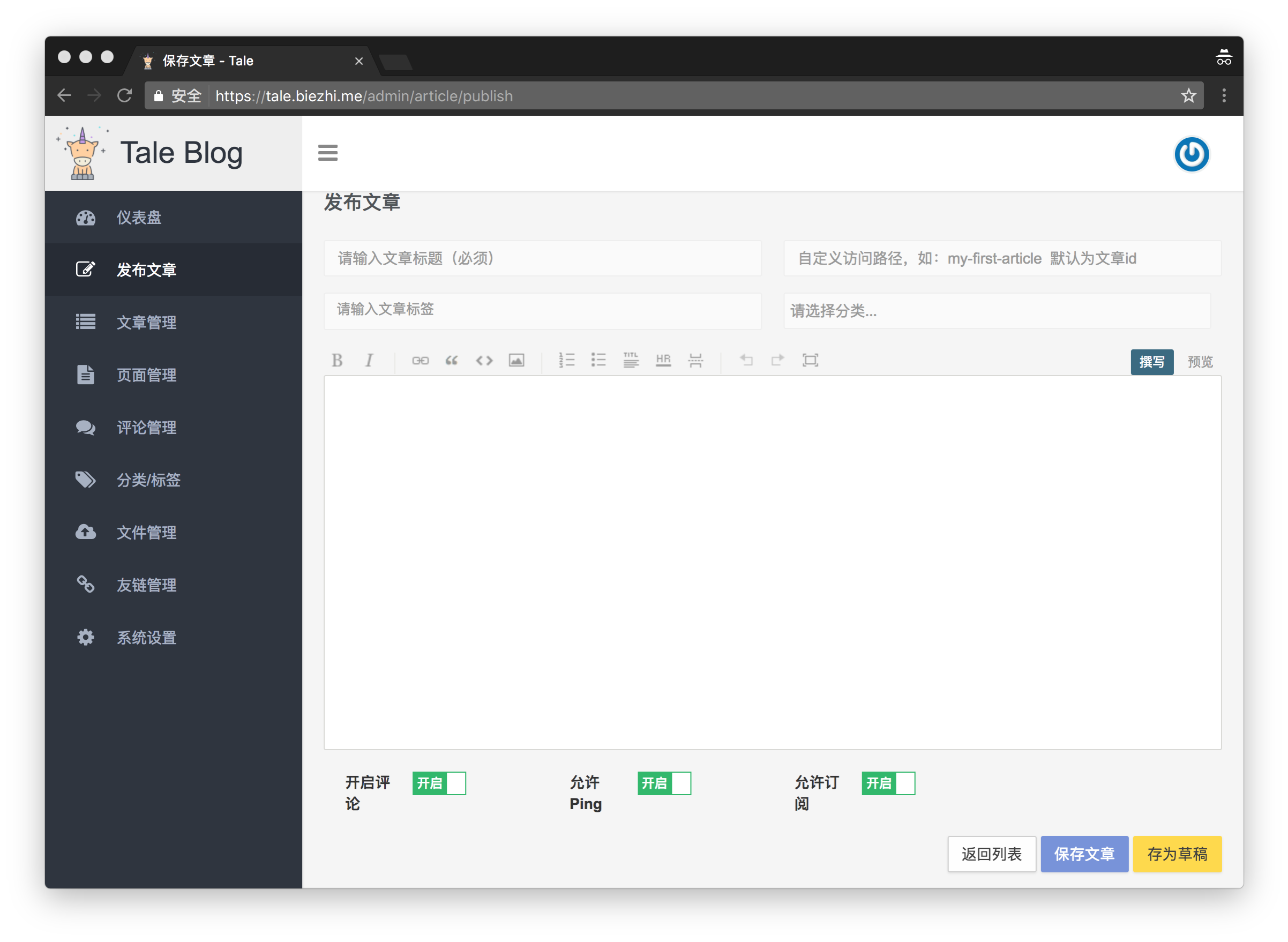 简介: 特性 设计简洁,界面美观 Markdown 文章发布 自定义文章链接 支持多主题 支持插件扩展 支持 Emoji 表情 支持网易云音乐播放 支持附件和数据库备份 部署简单,不依赖 Tomcat 无需数据库,内嵌 Sqlite 图片: 资源下载此资源下载价格为6.6U点点击检测网盘有效后购买,VIP免费立即升级客服QQ:305582964 联系邮箱:305582964@qq.com