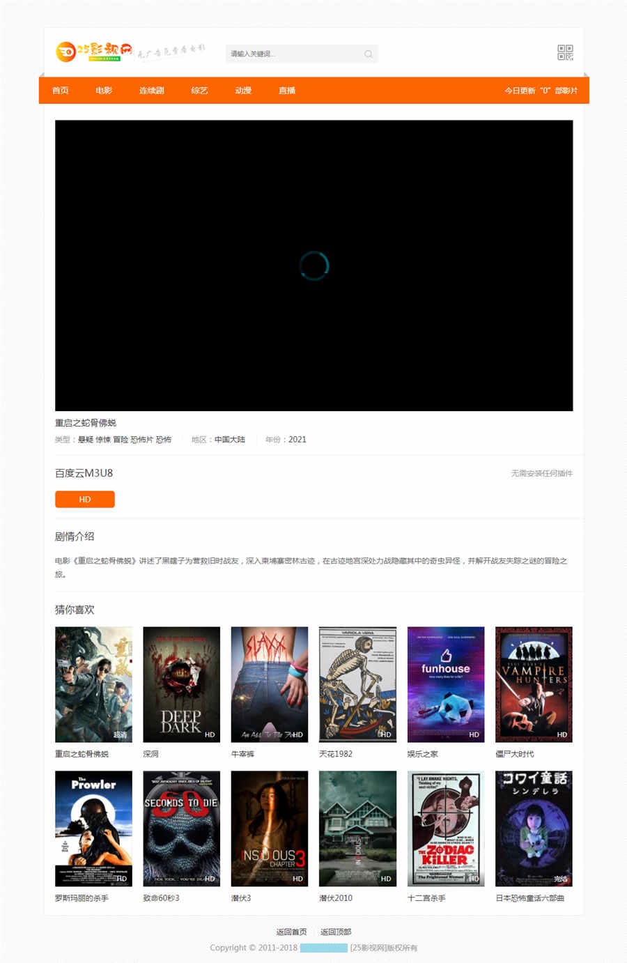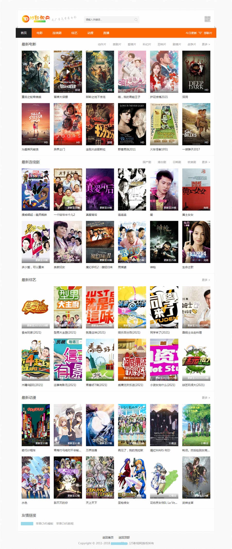 一款橙色风格25影视网主题模板,苹果CMSV10版本,自适应手机端,已测试,完美无错,效果看图。