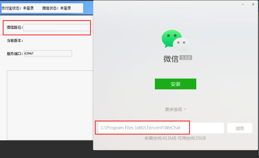 7、下载微信并安装https://pc.weixin.qq.com/ 建议安装在c盘默认位置8、将微信安装路径复制到软件上【图5】