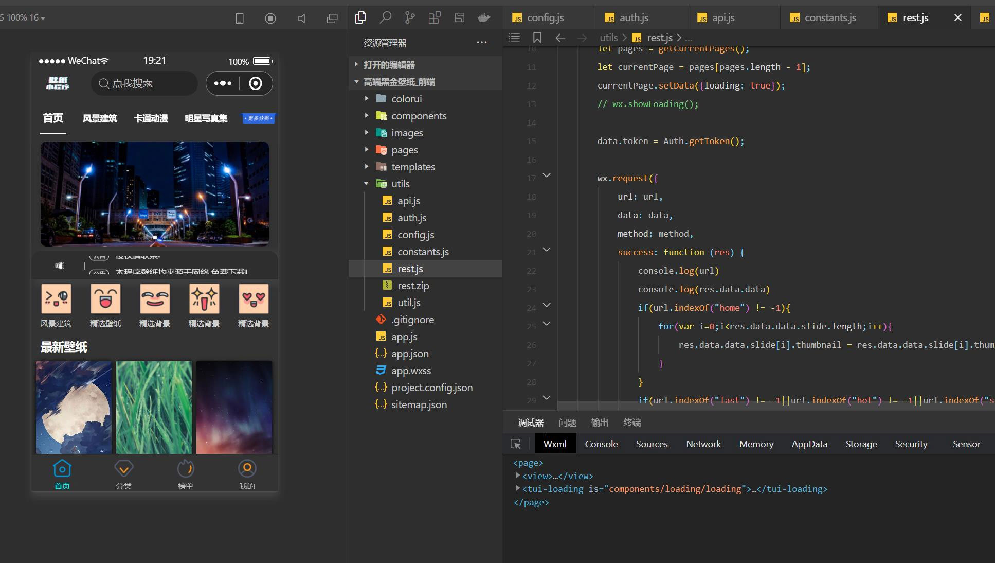 WordPress独立后台高端二开黑金壁纸微信小程序源码