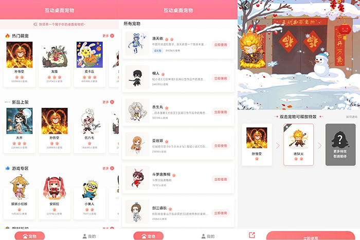 互动桌面宠物是选一只超萌超可爱的宠物放到你的手机桌面上,你可以随时跟TA互动,TA会到处走动,时不时和你卖萌,长时间不理TA还会跟你生气,解锁全部宠物,去除更新,无用功能和布局!