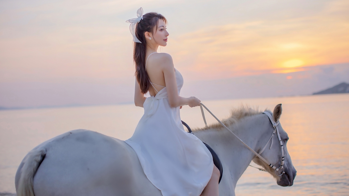 刘奕宁 海边 夕阳 马4k美女壁纸3840×2160 -静鱼客栈