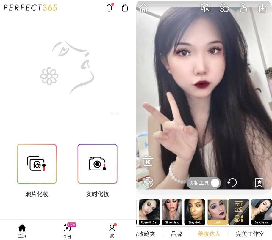 Perfect365根据用户习惯设计简洁明了的软件界面,一看即懂,傻瓜式操作,打开软件即可编辑照片,随意变换各种妆容。
