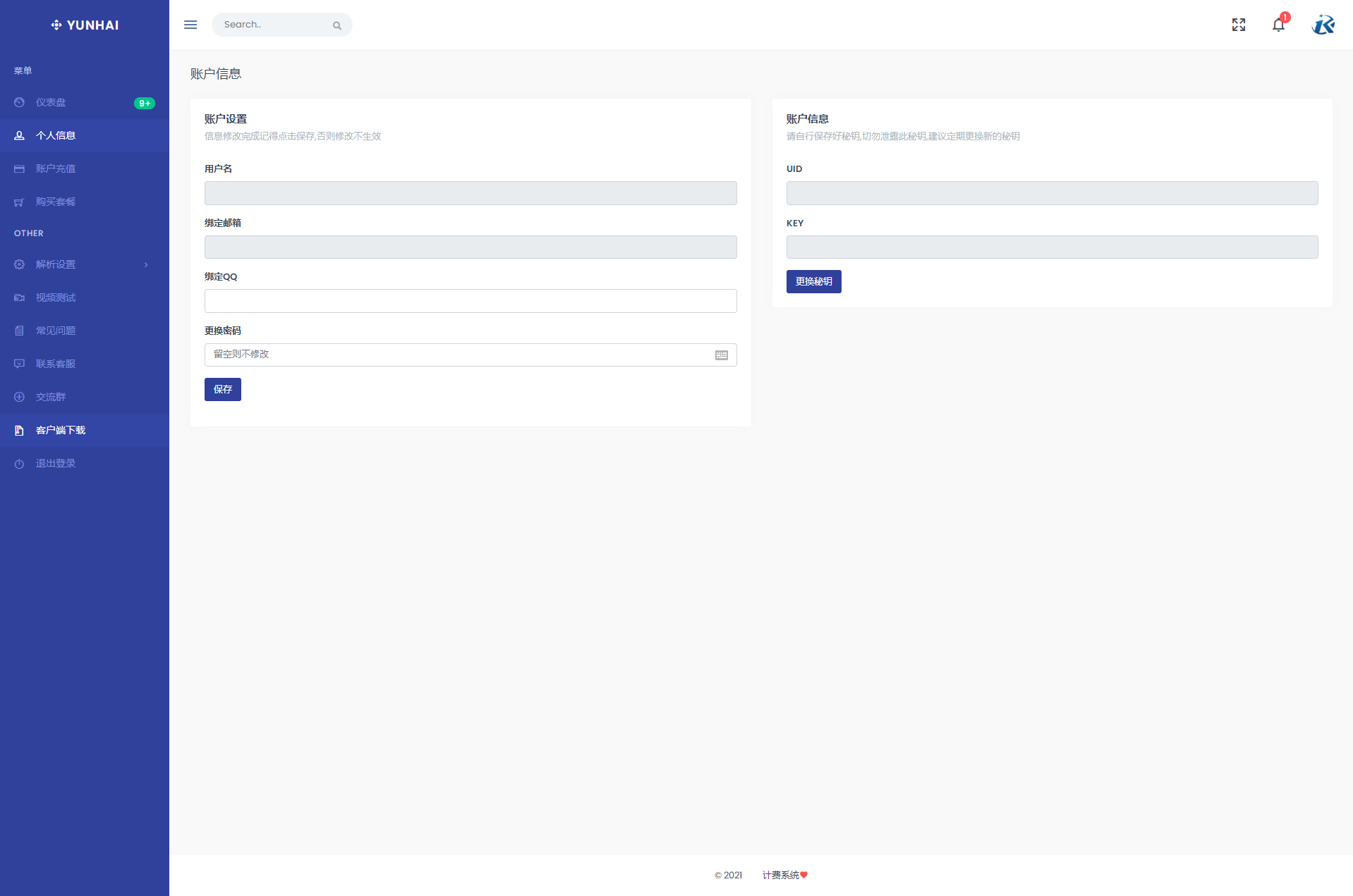 源码含:替换系统、计费系统、客户端源码,安装云海解析计费系统需 PHP7 以上