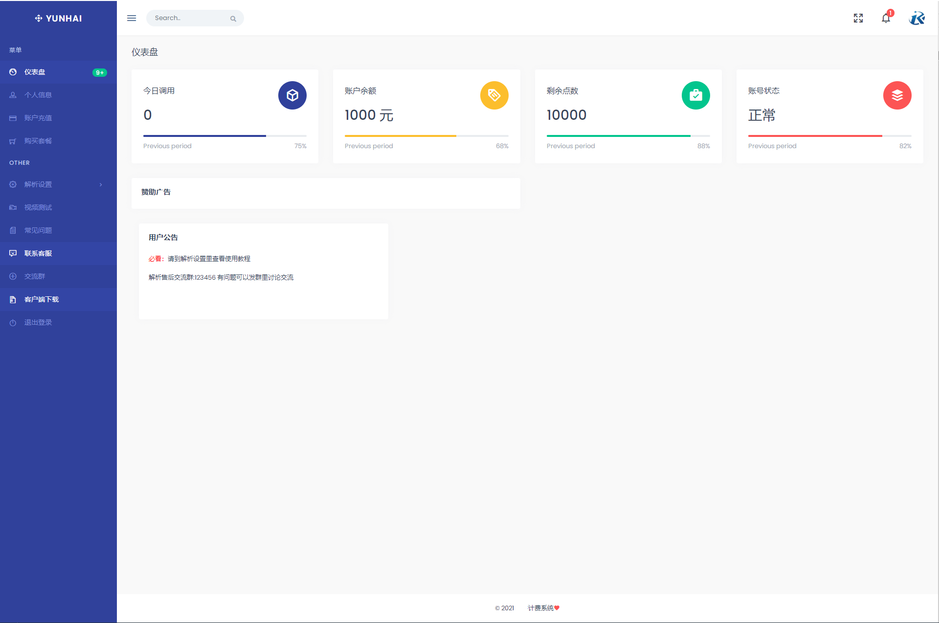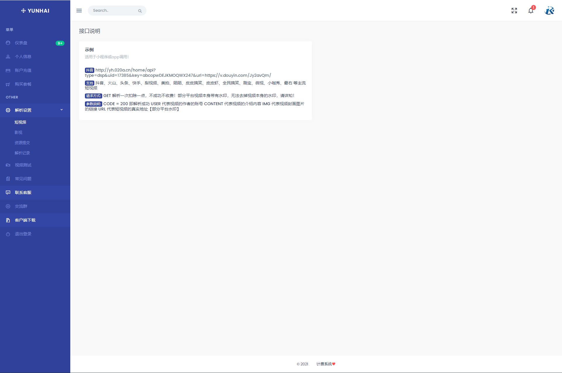 云海计费系统v4.2 视频解析 短视频解析 影视视频电影解析计费平台源码程序