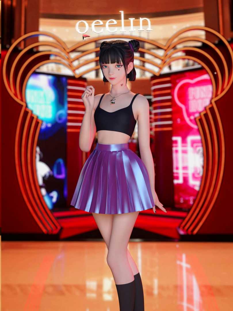 手机壁纸推荐|集原美 紫色短裙 美腿 黑色袜子 高清3k全面屏手机壁纸