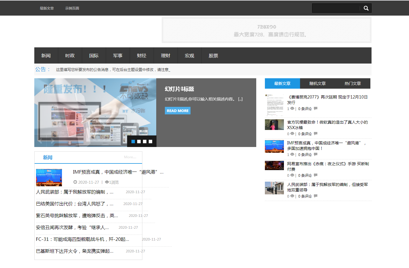 幻灯片设置:后台设置标题、描述、链接,支持后台直接上传图片;