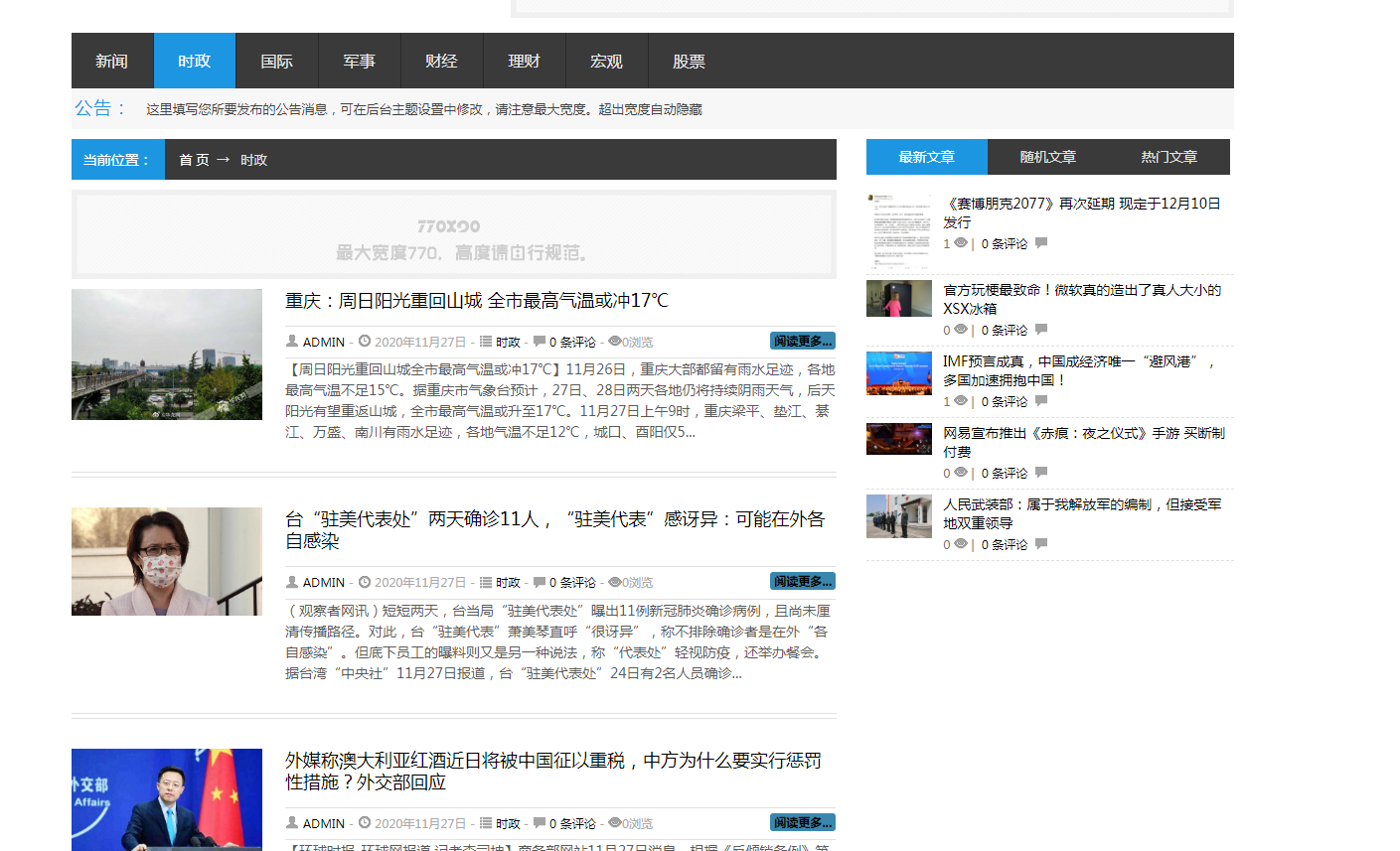 小工具:移除不常用的默认小工具,添加:标签云、聚合文章、特别推荐、广告;