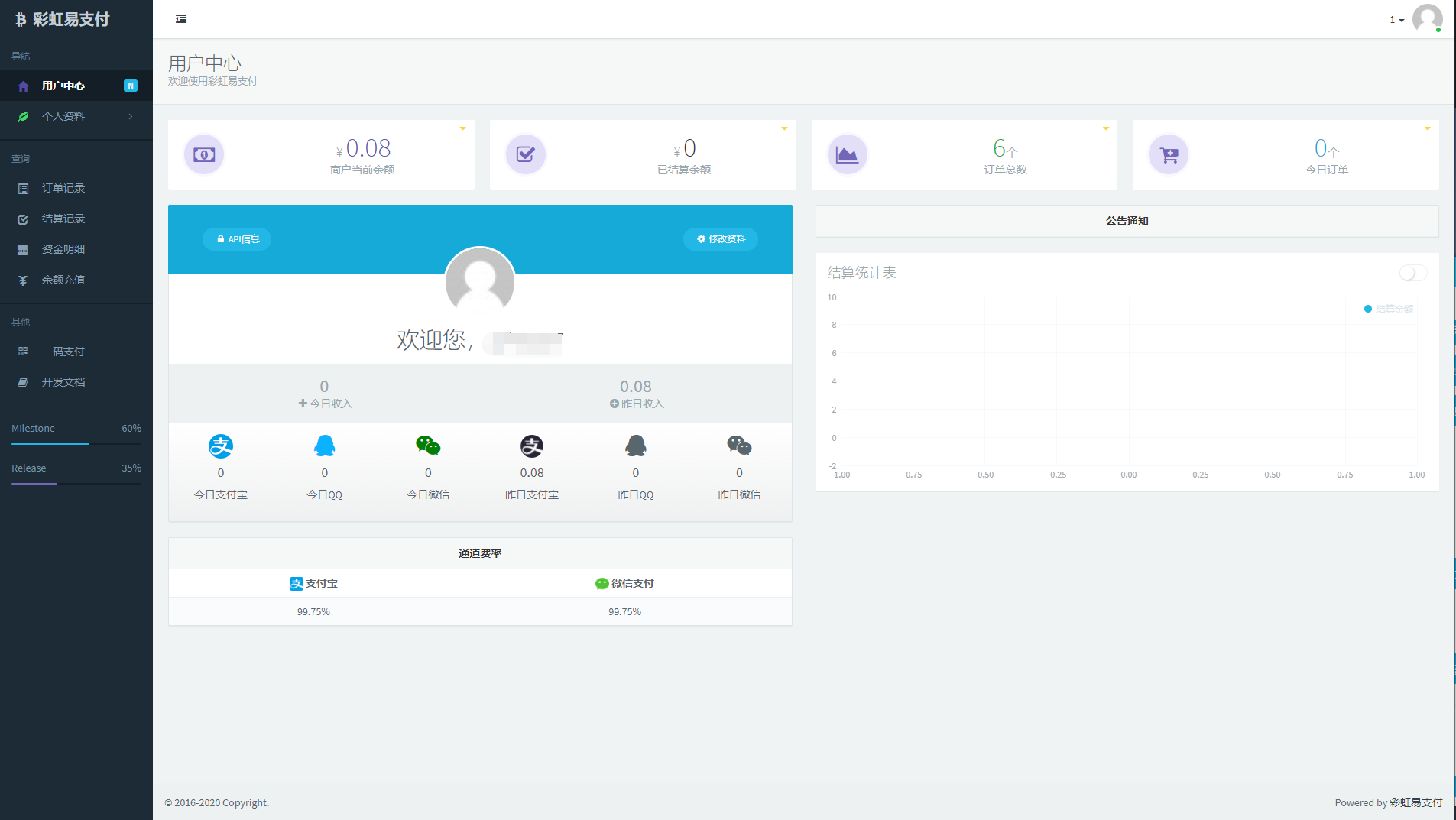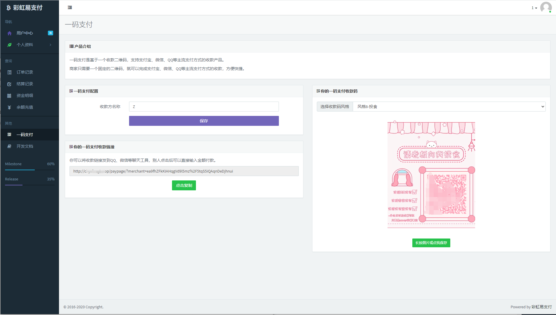 介绍: 彩虹易支付全开源版本,朋友在互站买回来的东西。 自带多款模板可随意切换,且全开源无加密无授权 对接有商户进件签约通道及Z支付免签约渠道,开关商户付费注册设置 支付接口配置,短信接口配置等等,都可以在后台一键配置。 非常好用的一款易支付系统。AP文档及SDK文件也都一起打包 配备了搭建教程。 图片: 资源下载此资源下载价格为6.6U点点击检测网盘有效后购买,VIP免费立即升级客服QQ:305582964 联系邮箱:305582964@qq.com