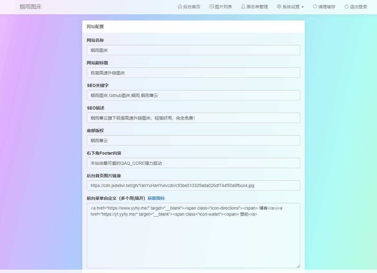 烟雨图床程序这是我目前为止看到的唯一一款开源的既可爱又简洁的图床程序了,它基于烟雨写的QAQ_CORE开发,采用MVC架构编写而成,使用Github进行文件储存,由JSDelivr提供全球CDN加速服务,它很可爱。她很美…