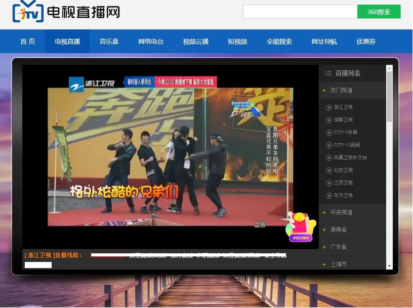 电视直播源码,直接上传到空间就可以使用,全站HTML文件,集电视直播,电影,音乐于一体,点击LOGO弹出播放,给你不一样的视觉效果。