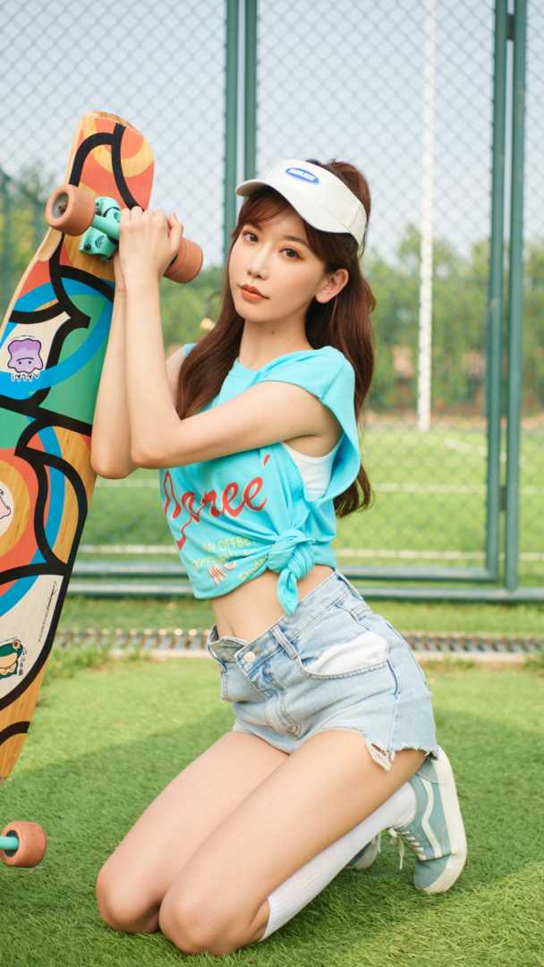 运动可爱美女陈潇 牛仔短裙 美腿 好看身材4K手机壁纸竖屏美女全屏