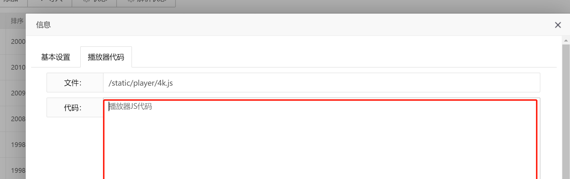 4、如需播放器结束之后自动下一集将刀客修复专用js代码放入苹果cms播放器代码中如下图红框中