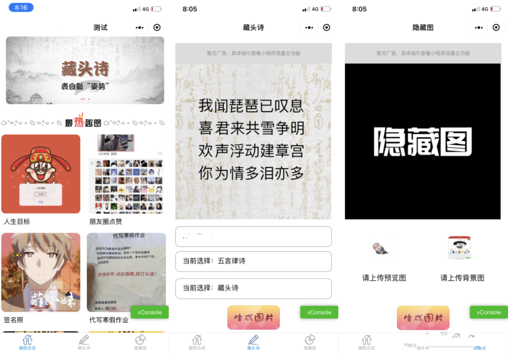 趣味娱乐小程序源码多流量主 趣味制作/藏头诗/隐藏图