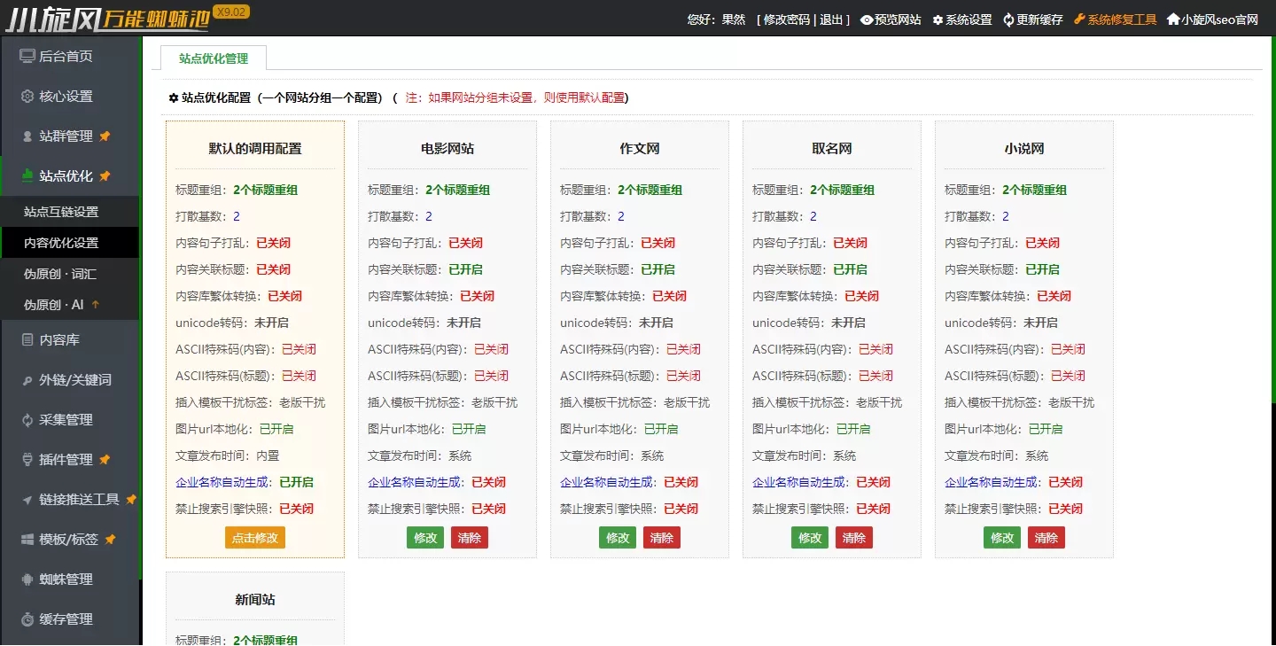增加分组定制网站名称库、栏目库、句子库、文章库、图像库、企业介绍等。