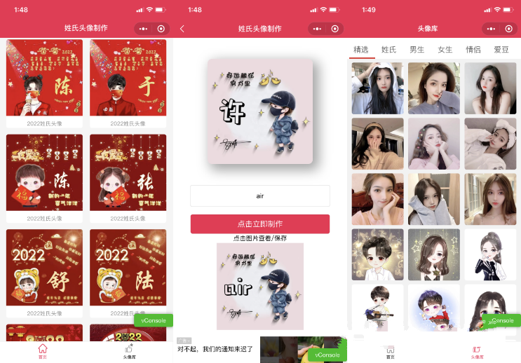 姓氏头像制作小程序源码_全新UI带头像库_支持多流量主模式,支持N种模板制作生成。