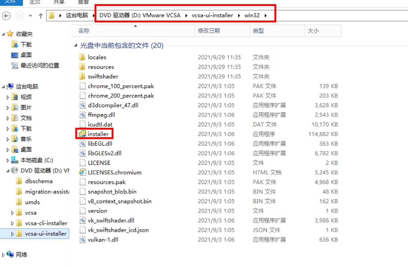 1.下载VMware-VCSA-all-7.0.3-18700403.iso文件,用虚拟光驱挂载或者解压运行,本地系统以win10拟光驱挂载为例,运行vcsa-ui-installer/win32/installer.exe