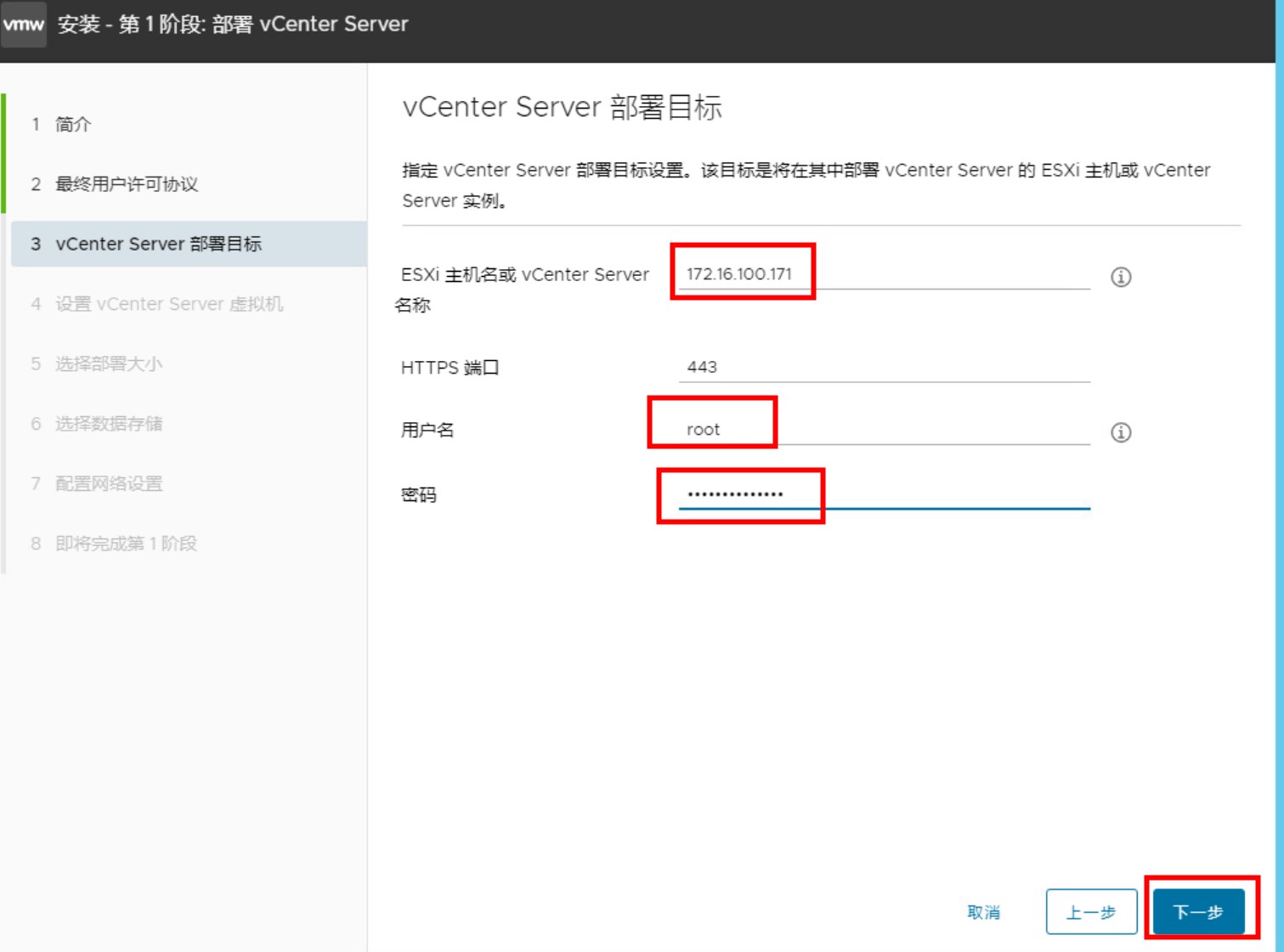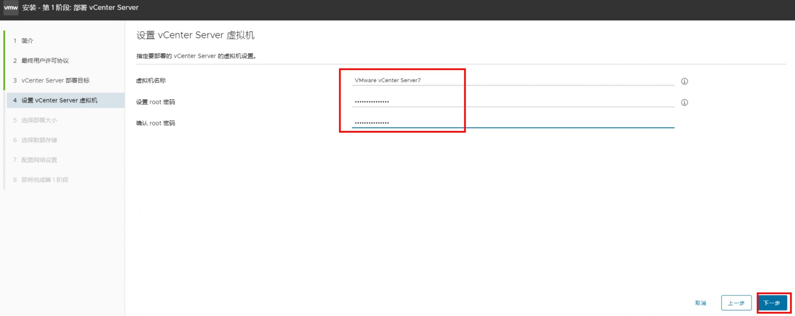 6.配置VCSA 7.0虚拟机名称以及root密码