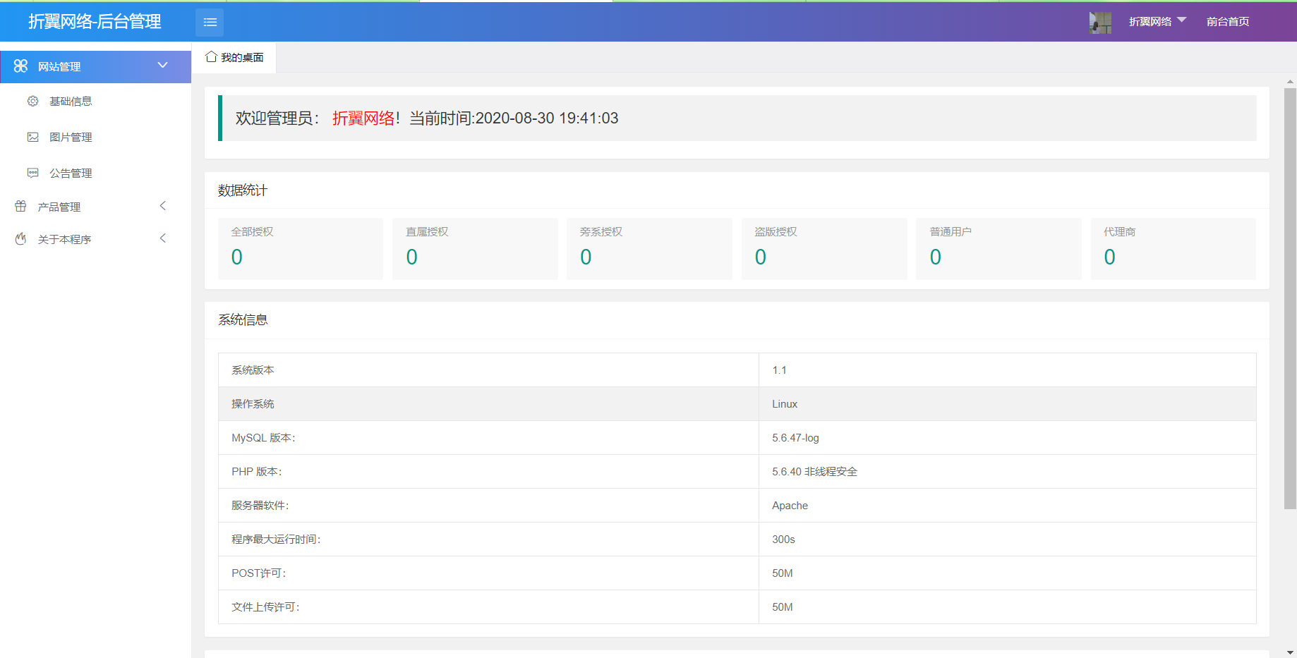 介绍: 折翼网络授权官网程序 正式版 传全部文件后 访问域名加/install安装程序。 然后上传zheyi.sql覆盖数据库 因为安装包的数据库是没有配置信息的 网站后台 域名/admin 账号/密码:admin/123456 图片: 资源下载此资源下载价格为6.6U点点击检测网盘有效后购买,VIP免费立即升级客服QQ:305582964 联系邮箱:305582964@qq.com