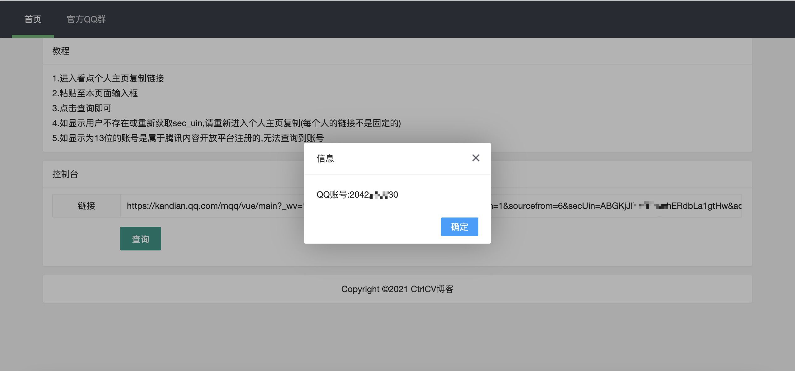 介绍:可以查询到QQ看点的用户QQ账号,原来的base64解密方法用不了了。