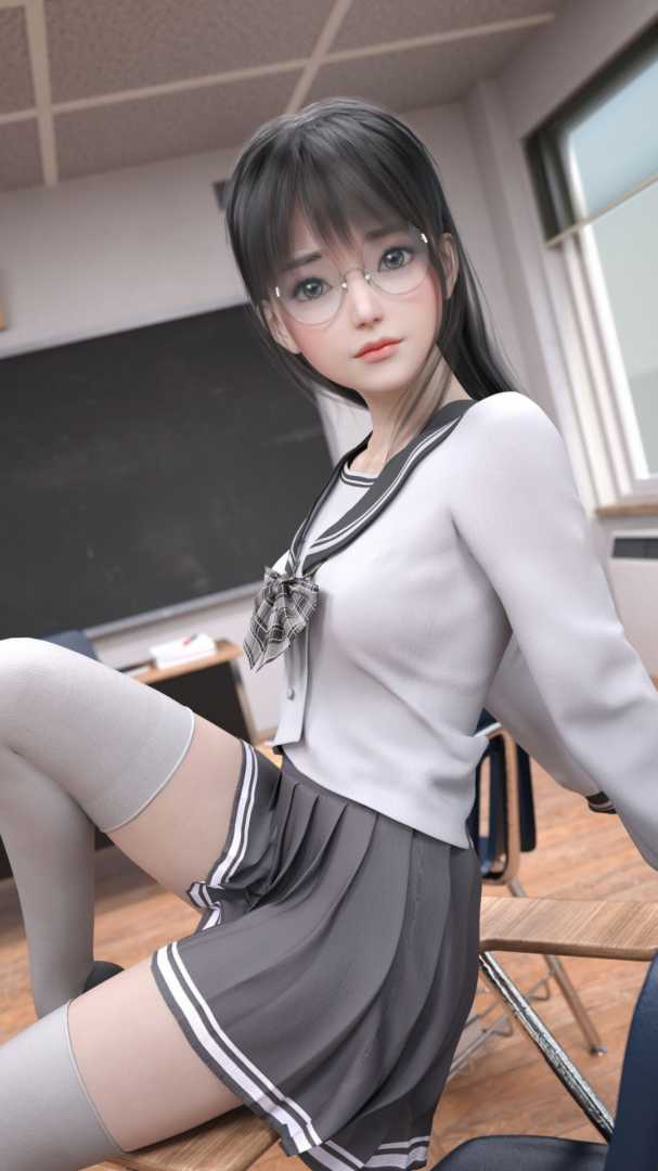 jk制服 美少女 眼镜 短裙 白色裤袜 全面屏动漫手机壁纸
