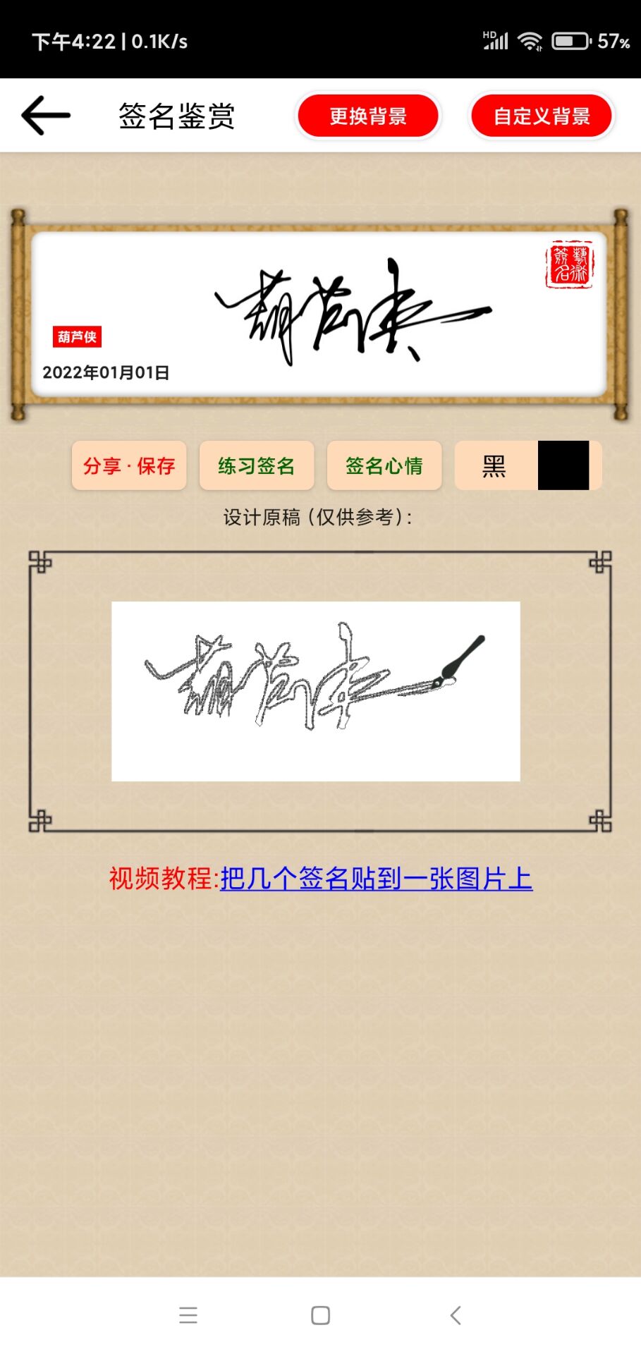 【本地签名库】 *保存专家设计的签名,本地随时回看,或练习签名 【设计原稿】 *查看设计原稿,让你更了解签名过程