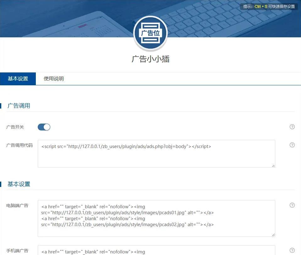 zblog广告小小插件,支持版本:ZBlogPHP1.5.2+