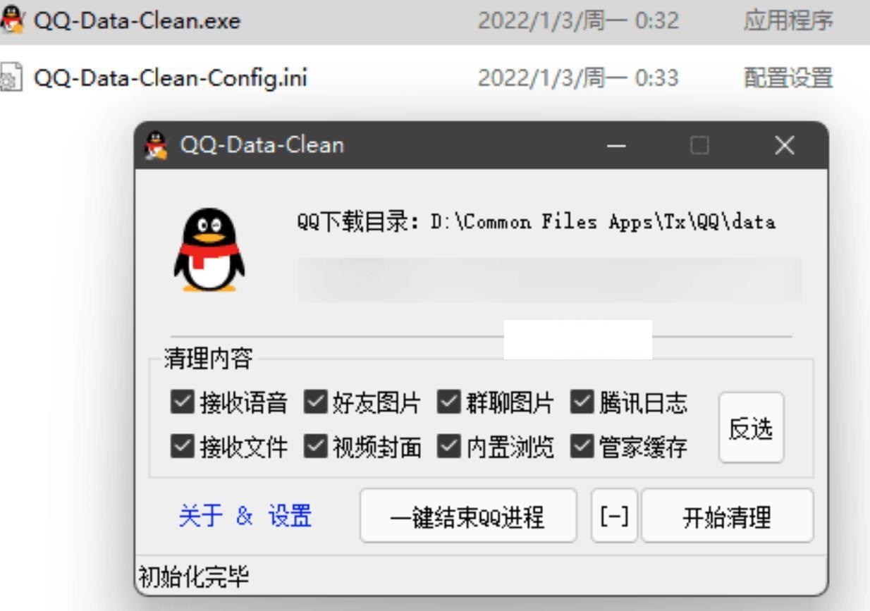 如果QQ使用了一段时间,占用电脑内存也越来越大,主要是一些聊天记录和图片什么的,这些如果不清理,会达到几十个GB左右,第一次打开工具会要求输入对应的缓存目录,支持多账号清理,工具刚开始是有自动检测QQ安装目录的功能,但是好像没有什么用就删除了,源码和工具打包在一起了。