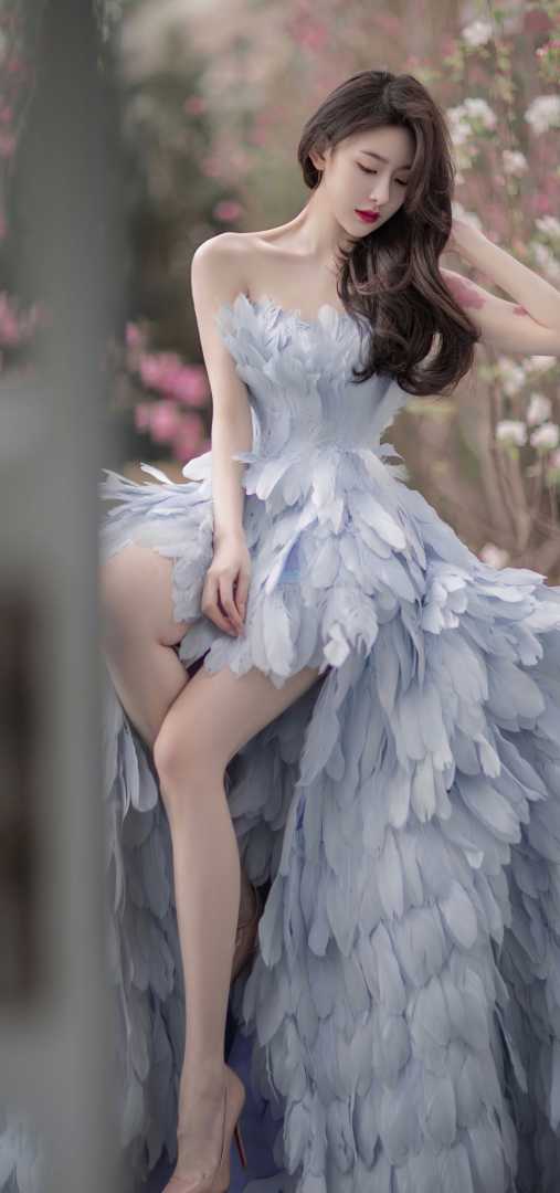 美女 羽毛裙子 美腿 唯美4k手机壁纸美女