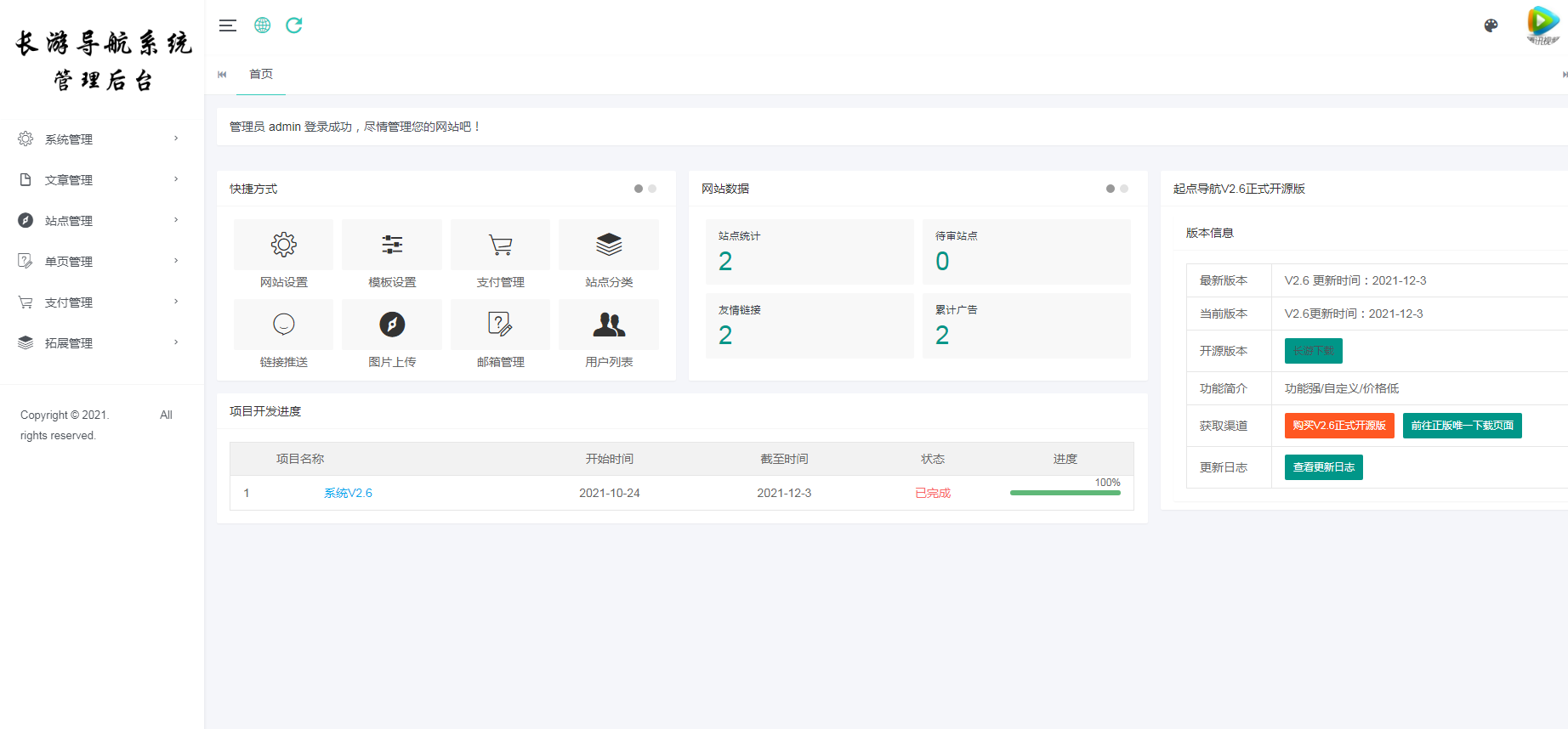 起点导航系统V2.6开源版是一款开源导航系统源码,支持自动审核【需要在后台开启】、自助出售广告位、提交百度收录、自动获取网站信息等。源码自适应手机端电脑端,无加密,无BUG,无后门,可运营。
