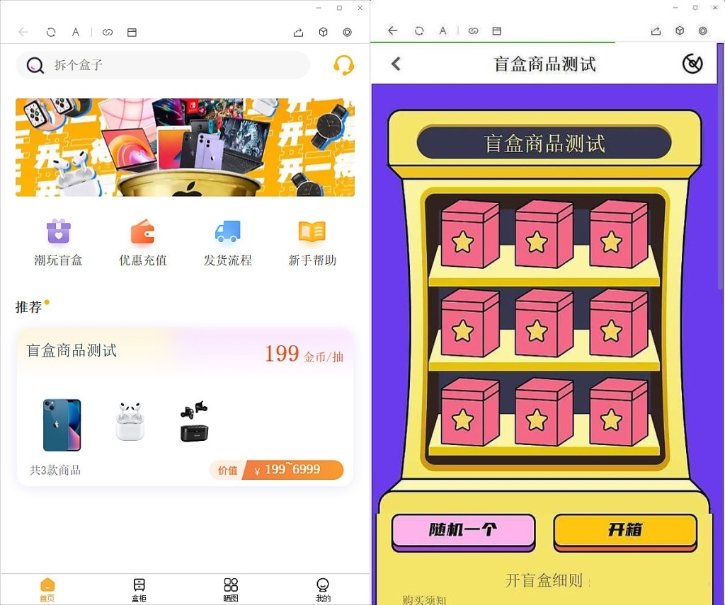 介绍: 差不太多,但是UI上还是差点,商品和盲盒可以在你程序里添加,设置概率等!! 图片: 资源下载此资源下载价格为6.6U点点击检测网盘有效后购买,VIP免费立即升级客服QQ:305582964 联系邮箱:305582964@qq.com