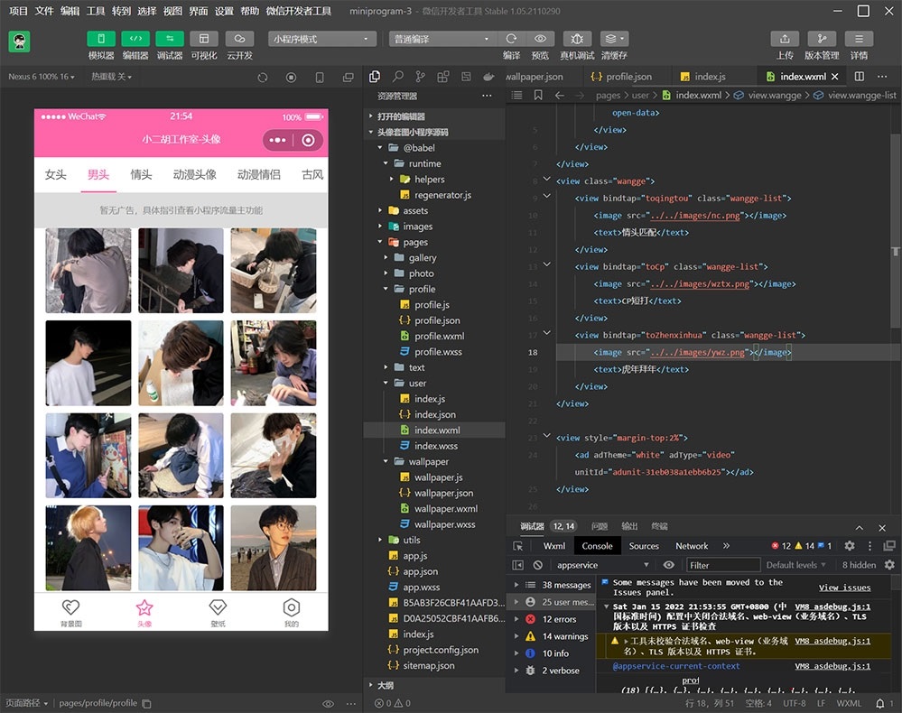 云开发版粉色UI微信小程序源码,背景图、头像、壁纸小程序源码,带流量主功能。