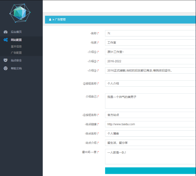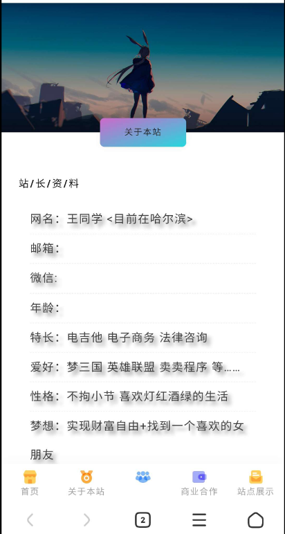 介绍: 一款好看的个人工作室主页源码分享 v1.0 beta 1.嵌入后台 支持在后台修改网站信息(仅手机端) 图片: 资源下载此资源下载价格为2U点点击检测网盘有效后购买,VIP免费立即升级客服QQ:305582964 联系邮箱:305582964@qq.com