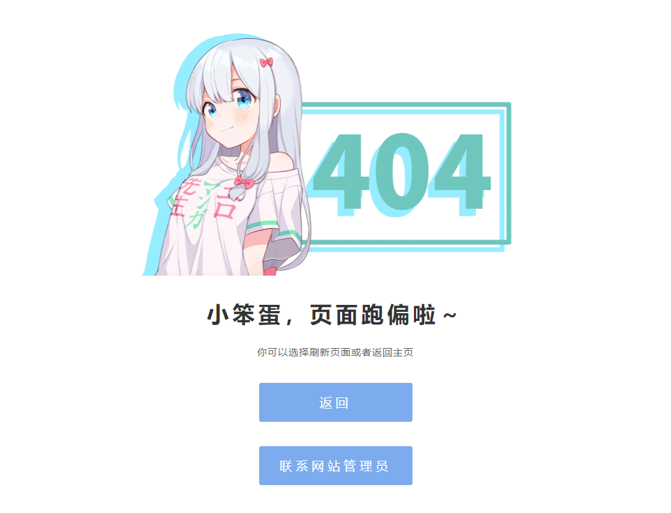 今天分享一款许多老二次元的朋友们都比较喜欢的老婆,和泉纱雾的404页面的网页源代码,进入这个404页面就能看到我们的女主角和泉纱雾,相当简约好看,所以和泉雾纱是我老婆。