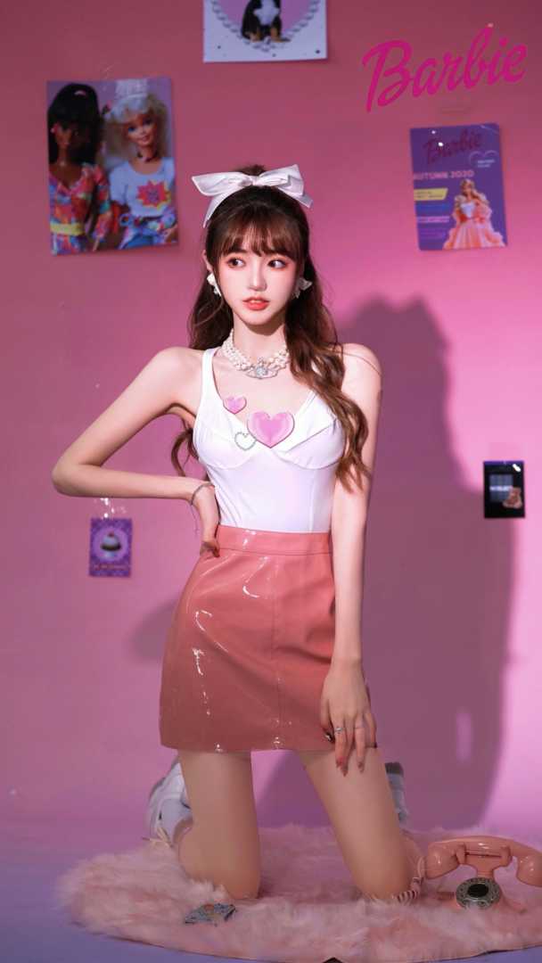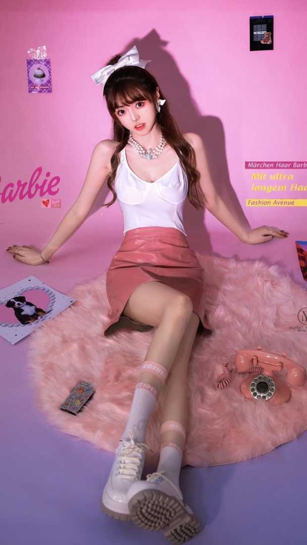 粉色系美女鹿醒粉色短裙4k手机壁纸竖屏2160×3840
