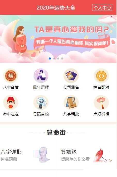 01、2019爱情运 02、八字精批 03、2018运程 04、姓名配对 05、姓名详批 06、综合分析 07、姻缘分析