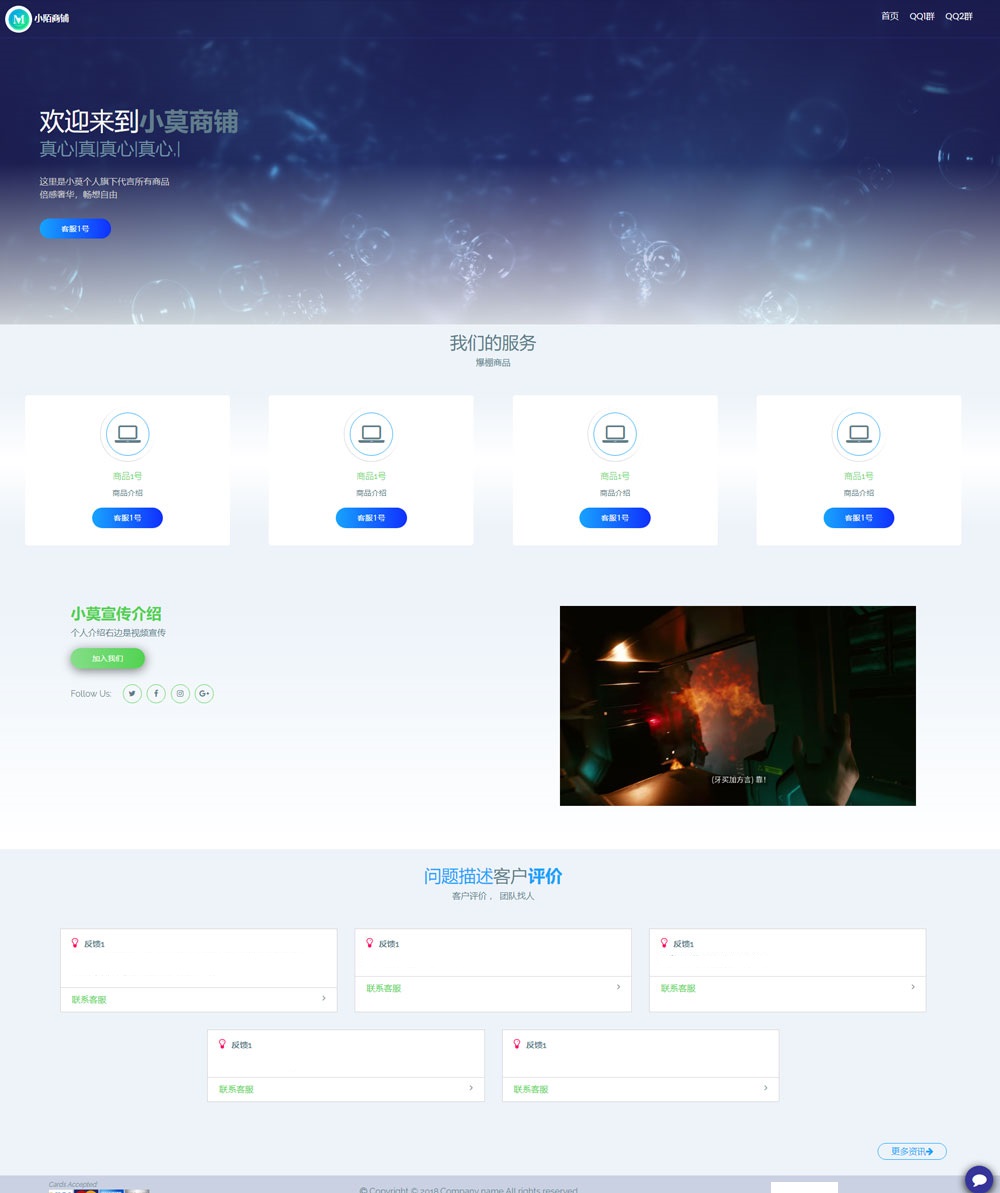 小陌商务介绍页源码(商品展示,用户反馈,视频展示)