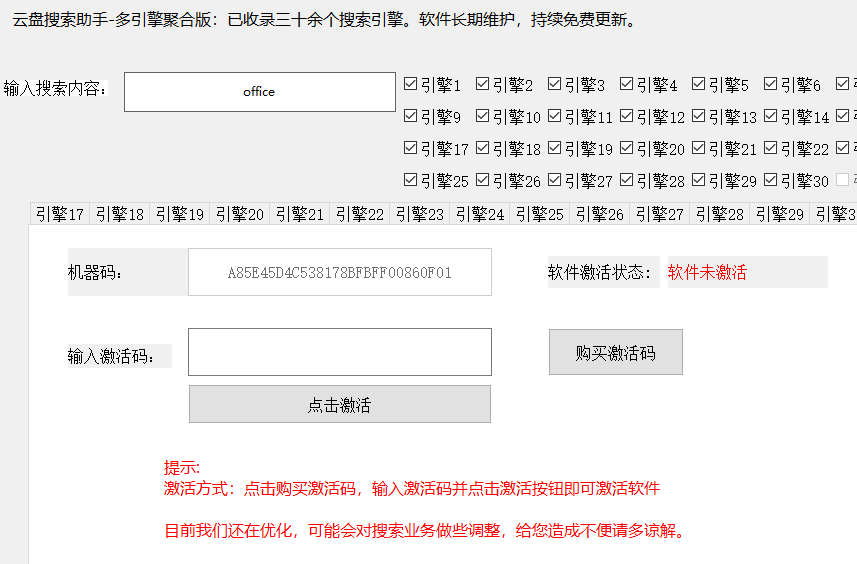 注意:激活程序与搜索助手一定要同时运行!如果在跳转网页时出现激活字样,代表你没有同时运行激活程序。将搜索助手关闭,两个软件重新运行即可!