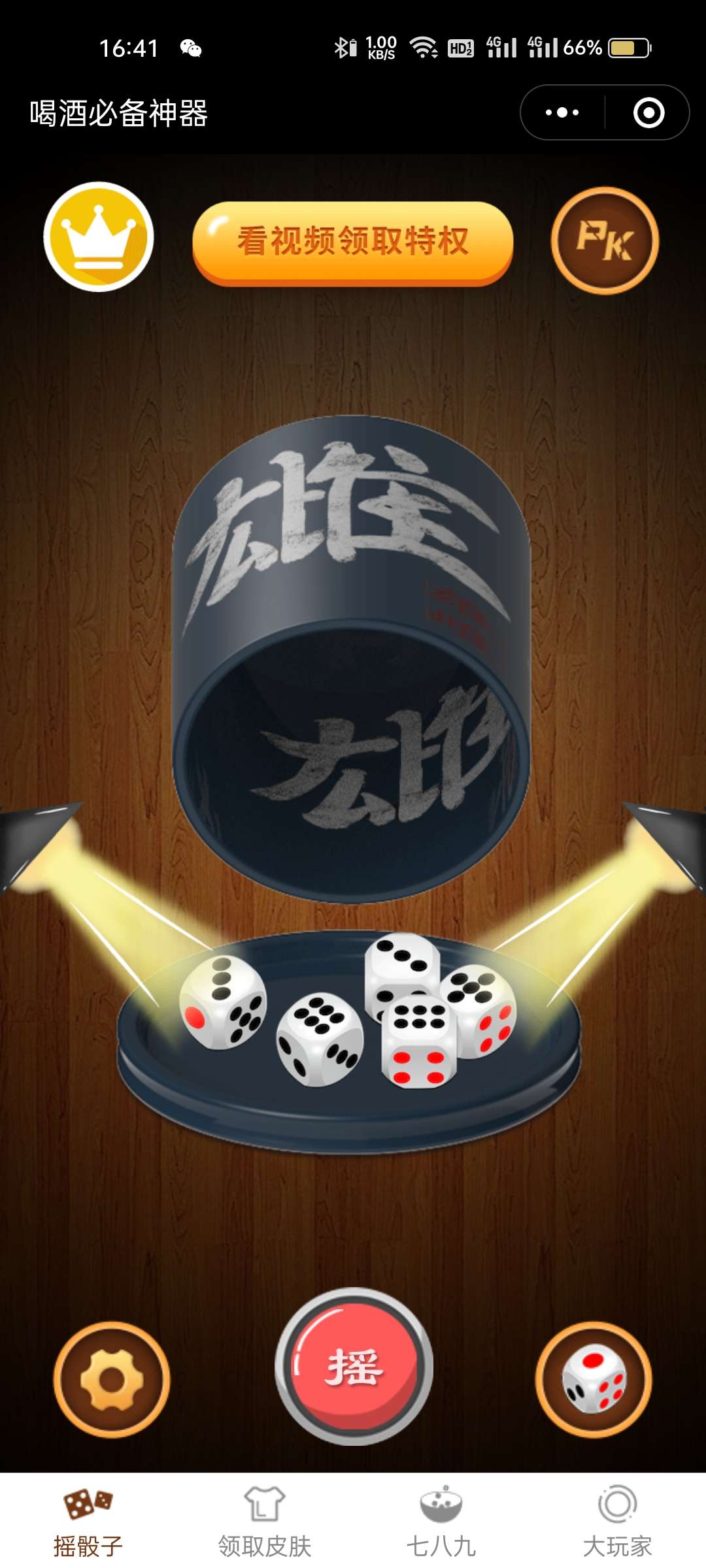 【特色功能】观看激励视频可以更换摇骰子的筛盅样式