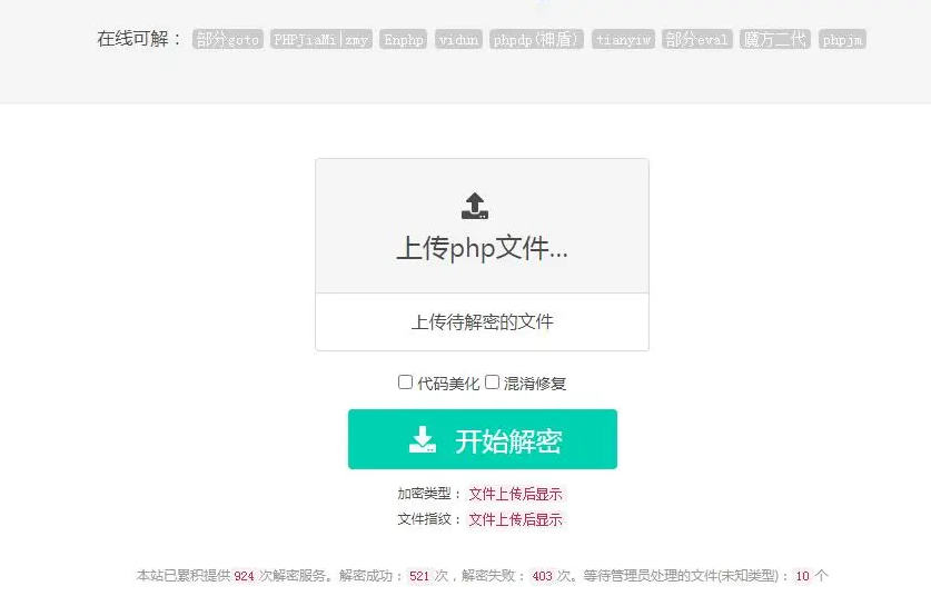 在线可解: 部分goto、PHPJiaMi、Enphp、vidun、phpdp(神盾)、tianyiw 无数据库上访问域名就能用 资源下载此资源仅限注册用户下载,请先登录客服QQ:305582964 联系邮箱:305582964@qq.com