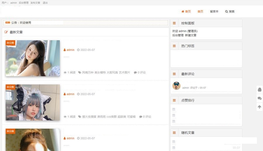 8、加入多个侧栏模块,比如:随机文章,随机标签,热门文章,热门标签,热评文章,最新文章等。