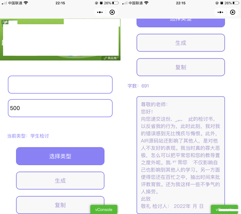 静鱼客栈 APP/小程序/源码 检讨书生成微信小程序工具源码-支持流量主 https://wp.muooy.cn/16396.html