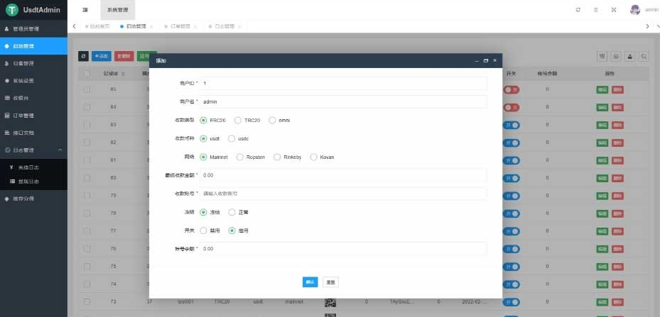 4.资金自动归集省去手动归集繁琐步骤5.对接api实现订单自动回调(可以后台设置手动回调)卖点:通过api接入该系统实现USDT(ERC20、TRC20)的充转,自动充值到账、可以对接到任何网站。