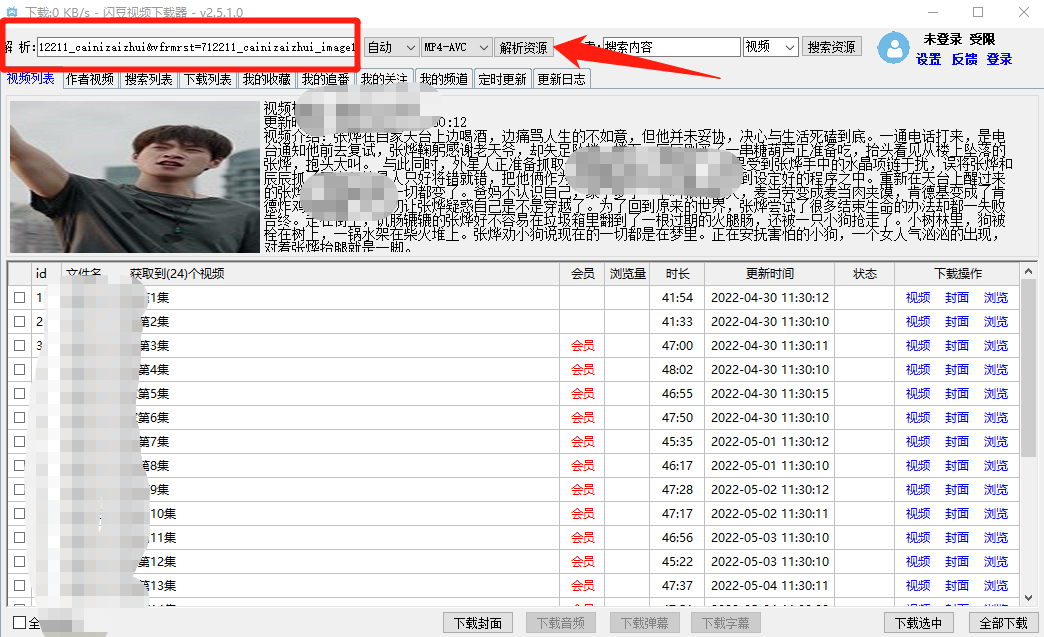 在使用时,只需要把视频/音频等要下载内容的网页链接复制到软件内,点击资源解析即可下载。