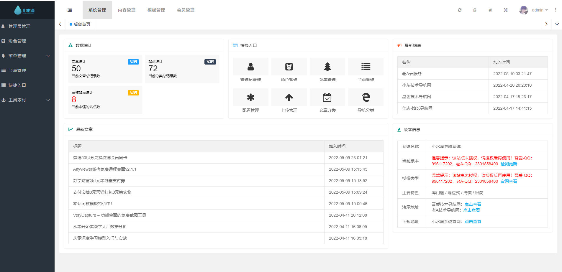 进入后台后提示你没有授权不用管他,咱们这个已经是完美绿色了授权的