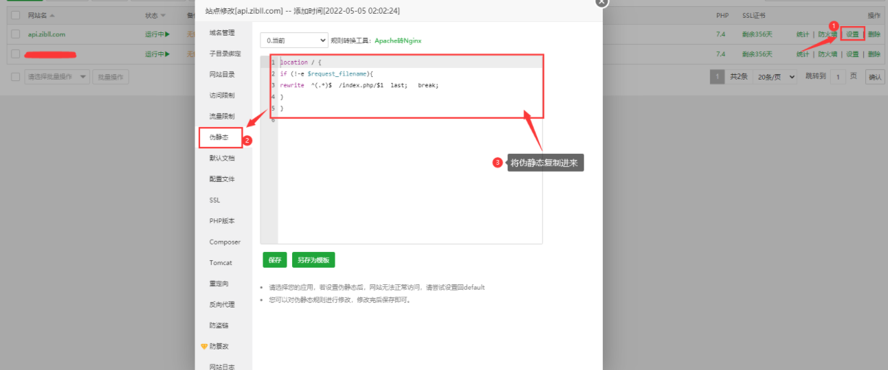 PS:这个伪静态是给api.zibll.com站点改的哈!切记!