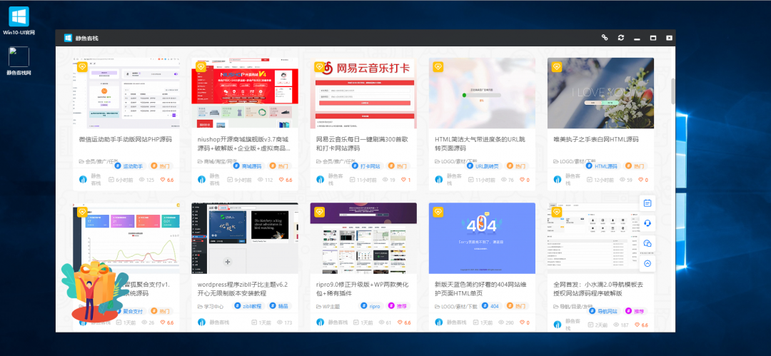 Win10-UI是一款win10风格的后台UI,让您轻松搭建一个别具一格的后台界面。Win10的动态磁贴,可定义方块大小,添加随机动画 桌面图标自动排序 任务栏结合iframe子窗口,与windows一致的窗口管理体验 开始菜单+消息提示中心,满足后台UI的设计需求 极少的API,大部分功能可用html元素定义完成 响应式兼容,在手机浏览器也有不错的观感 目前只保证对主流现代浏览器的兼容性支持
