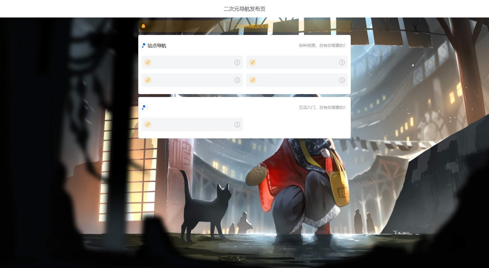 简约二次元网址导航发布页HTML源码,就一个个人导航单页源码,非常轻量级,只有技术KB左右,上传服务器即可自行修改标题文字即可使用,背景图自行替换。