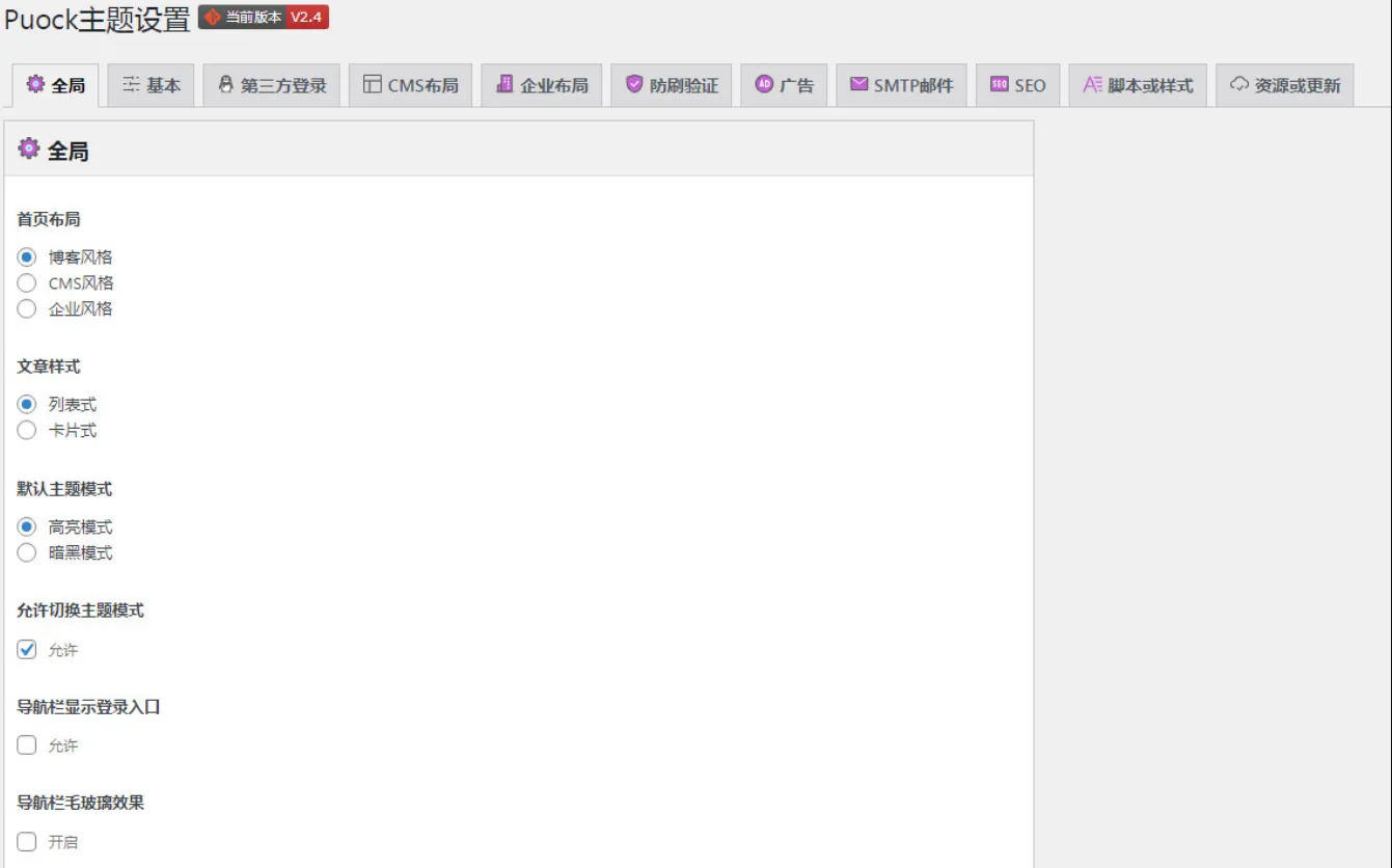 一款基于Wordpress开发的高颜值的自适应Puock主题模板,支持白天与黑夜模式。首页支持三种布局:博客风格,cms风格,企业风格